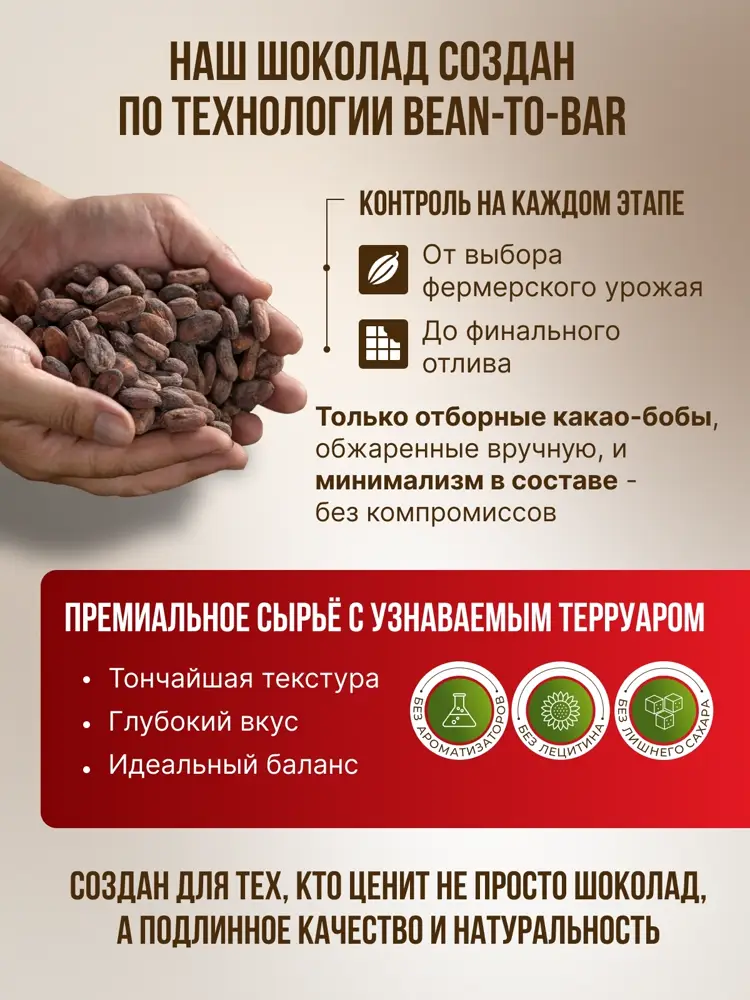 Рекомендации по употреблению: Ешьте по 2-3 кусочка шоколада в сутки и не кладите его в выпечку, чтобы не подвергать шоколад нагреванию свыше 100 градусов. Может сдержать незначительные следы орехов, ягод, фруктов и молочных продуктов.