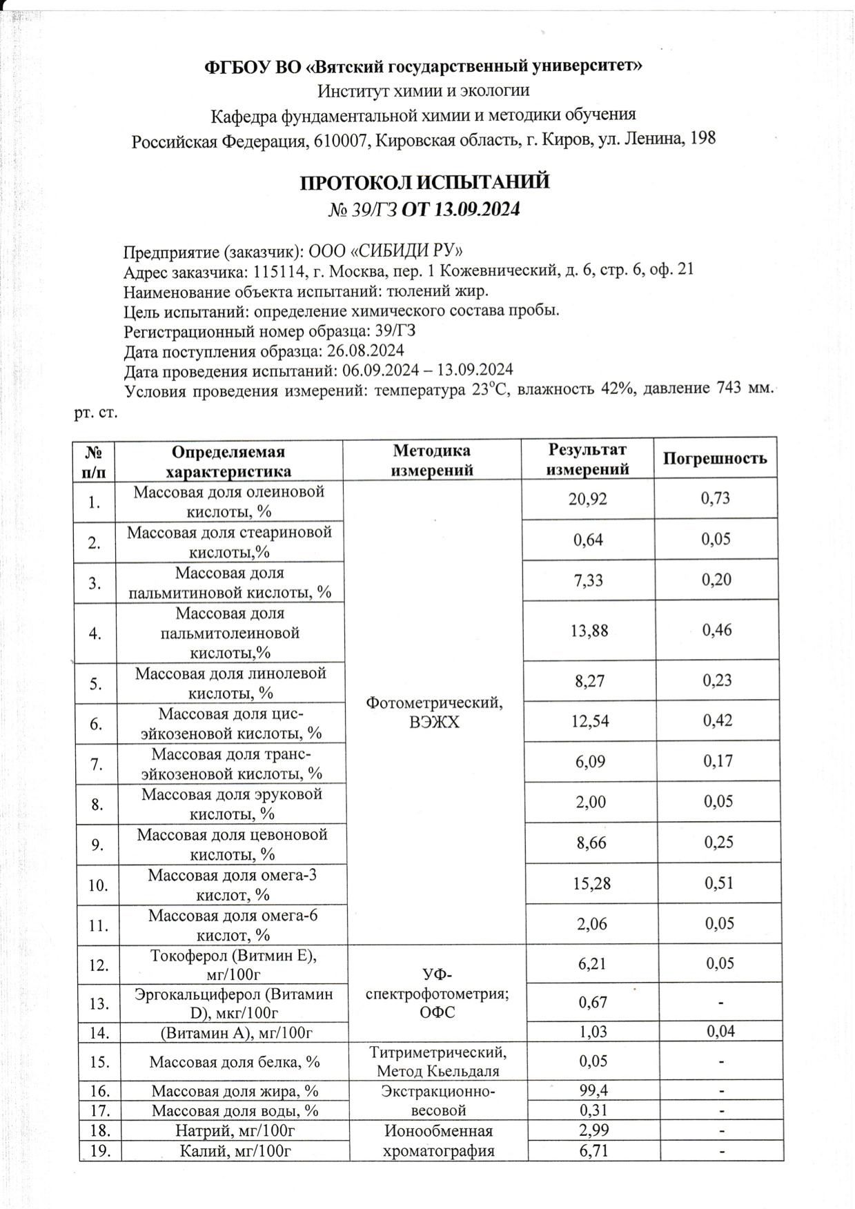 Высокая усвояемость: благодаря натуральному происхождению и щадящему методу обработки, тюлений жир легко усваивается организмом, обеспечивая максимальное действие всех полезных веществ.
