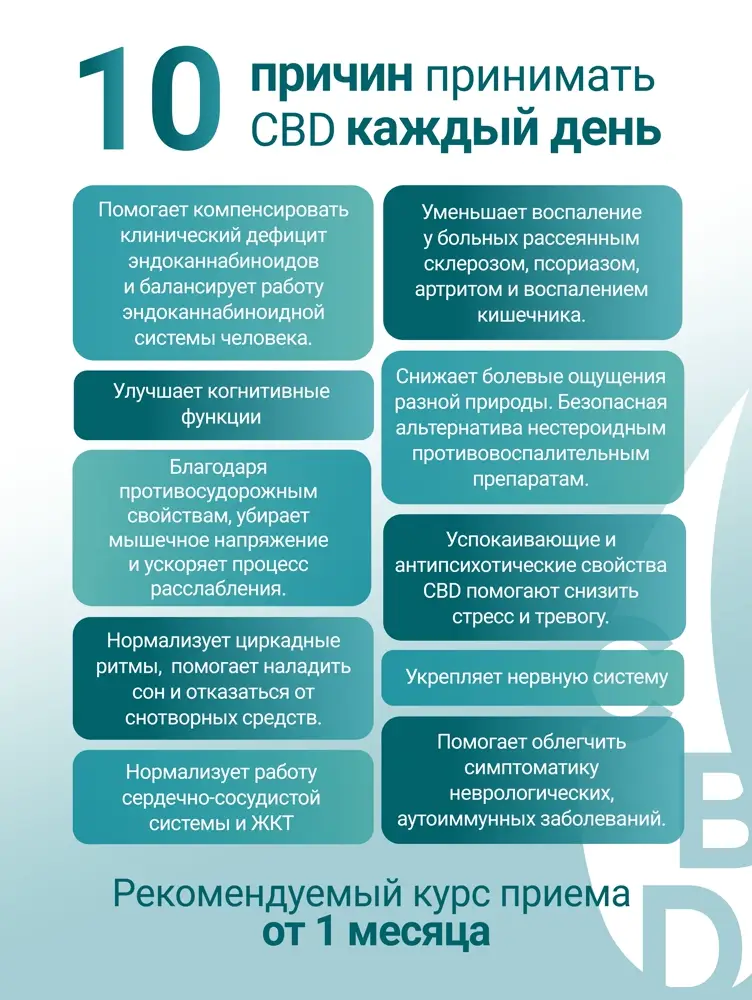 Высокое содержание CBD рекомендуется для продолжительного курса приёма. Это наилучшее решение для тех кто использует КБД в качестве дополнительной терапии.