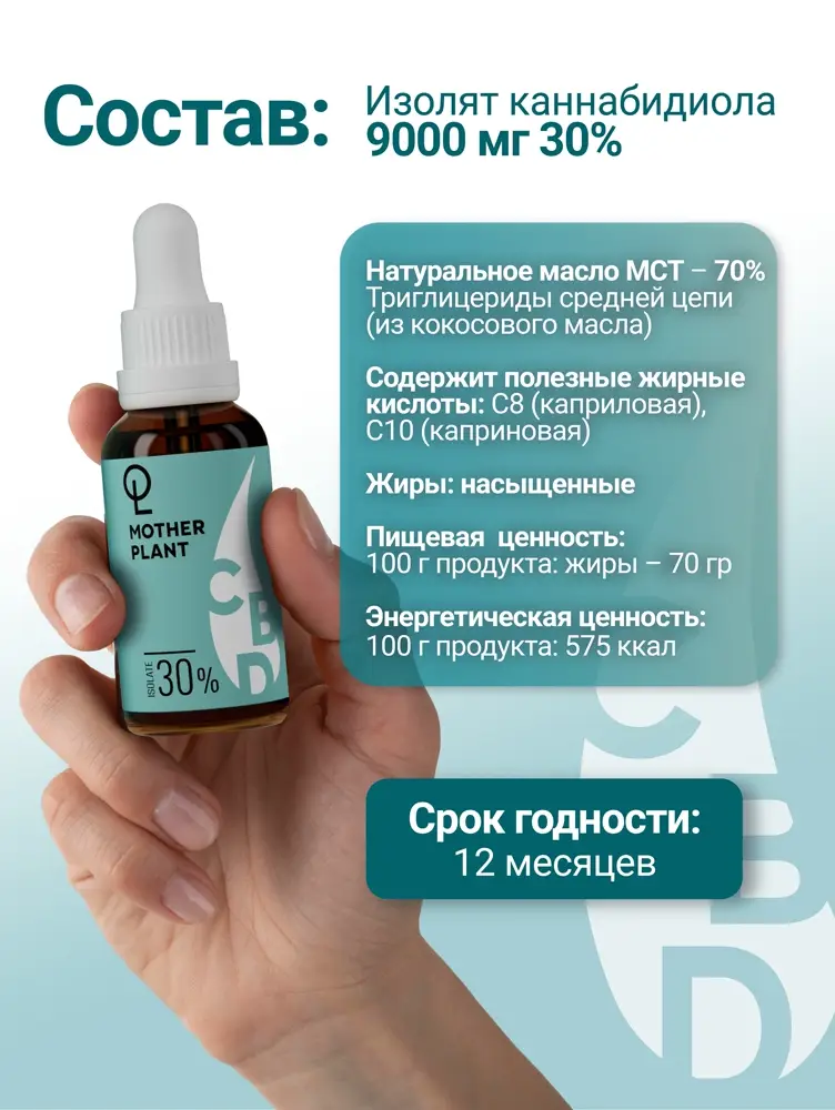 Масло CBD "Изолят" 9000мг 30% 30мл MotherPlant новинка / Цена — 6 900 ₽.