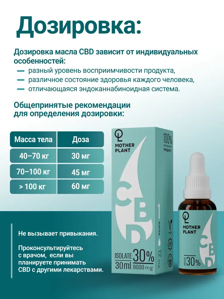 Масло "Изолят" MotherPlant с содержанием CBD 30% подходит: