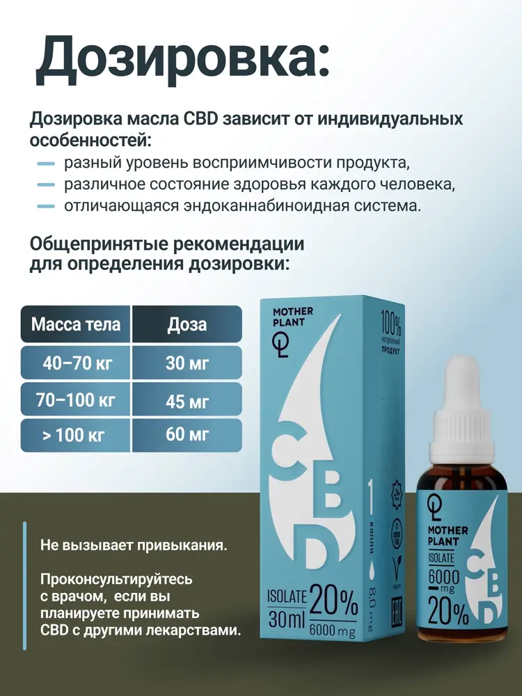 Масло "Изолят" MotherPlant с содержанием CBD 20% подходит: