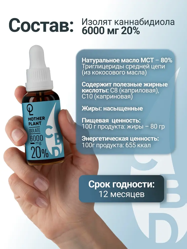 Масло CBD "Изолят" 6000мг 20% 30мл MotherPlant / Цена — 5 060 ₽.